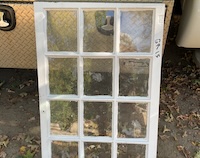 This is from an early built in corner cupboard. Measures 25-3/4” x 39-3/4” x 1” with the classic wide period muntins. 7” x 9” glass. This can certainly be used in a window sash application. $115 |