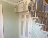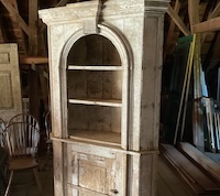 New Hampshire origin. Generous 93-1/2” height x 16’-9” overall width. See attached general layout measurements rendering. Light paint. Incredible state of preservation. Original door is missing. Fluted pilasters add to the presence of this period piece. $5,500 |