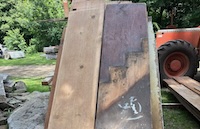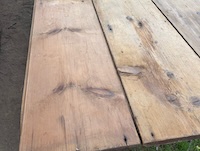 Three 1-1/4” thick pine planks that are 15-1/2”, 15-1/2”, and 16”W x 14’-9” long. One piece is 15”W x 7’-6”. Ideal for counter top or table top. Up and down sawn. 60 square feet $900 or $20/SFT for select board(s) |