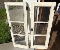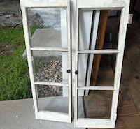 Overall measurements: 32-1/2” x 36”H x 1-1/8” One broken/missing glass which will be supplied with purchase. Shiplap center meeting rail. Can be utilized individually. $95.00/Set |