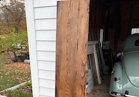 Tongue and groove assembled batch of unpainted stock. Fifteen boards with widths: 13, 14, 13, 13, 12, 11, 8, 8, 10, 15, 13,12,12,13 and 10. All are 92” up to 11’-8” long x 1-1/8” thick. These can be installed in a horizontal or vertical application. 155 square feet $2,100 |