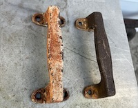 Vintage CAST IRON Handle Pulls-PAIR 2-1/2” wide x 6” length. Solid, hefty, will clean easily. $40 pair |