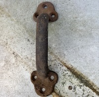 LARGE SCALE Cast Iron Pull Handle Single, measures 10” length x 2-3/4” wide cusp. $30 |