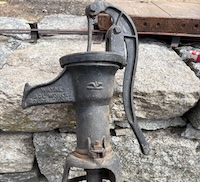 Kitchen Nickel Plated Pitch Pump A common kitchen item in most country kitchens or pantries prior to about 1945. Measures 36” overall. Portion above the mounting flange is 23” tall. Will clean beautifully. We have installed these with internal plumbing to make them usable again. Uncommon to be plated in nickel as most were copper, which is underneath the nickel plating. $150 |