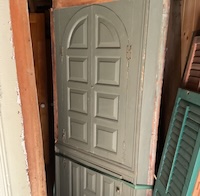 New Hampshire origin in old blue paint. Moulding still needs to be stripped. Original cast iron butt hinges. Measures 21”W x 78”H x 3/4” $125 |