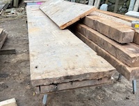 Three 1-1/4” thick pine planks that are 15-1/2”, 15-1/2”, and 16”W x 14’-9” long. One piece is 15”W x 7’-6”. Ideal for counter top or table top. Up and down sawn. 60 square feet $900 or $20/SFT for select board(s) |