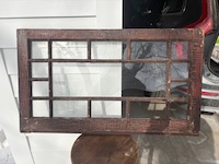 17-5/8”W x 22”H x 1”. No glass. Takes 6-5/8” x 8-7/8” glass. 1 inch wide muntins. High quality reproduction. $55 |