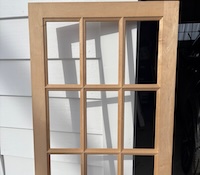 Unpainted in very solid condition. No broken glass. Measures 25” x 57” x 1-1/4” with 7” x 12” glass size. Nice muntin profile. $60 |