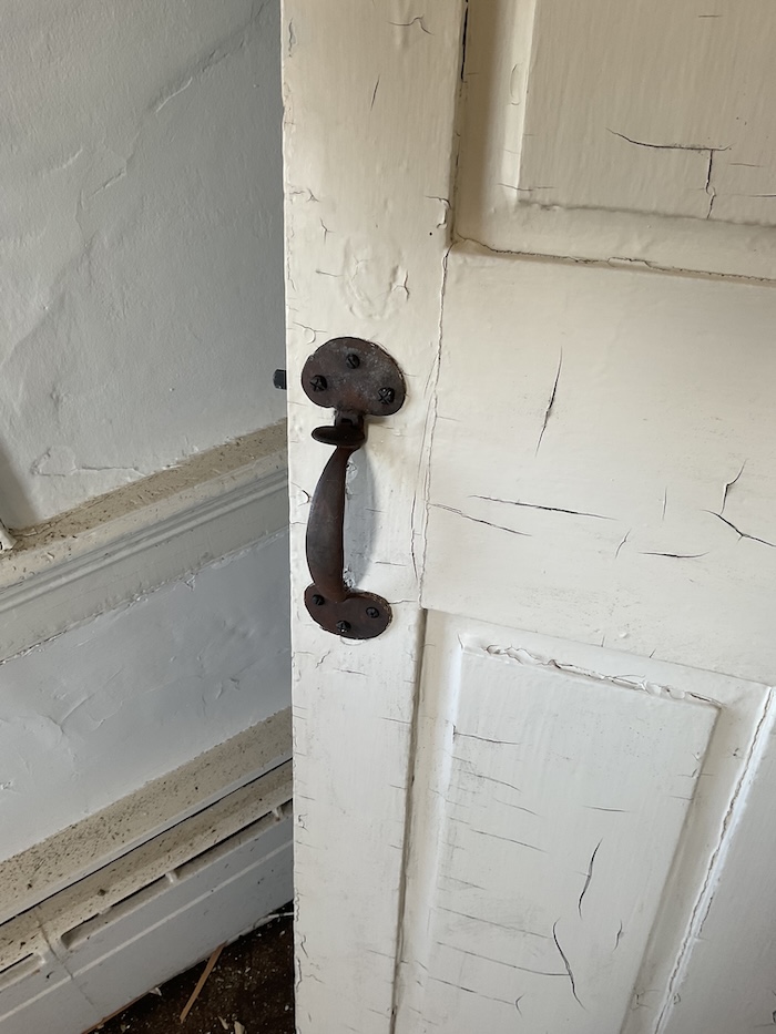 28-1/4” x 75” x 1” with original hand forged 9” HL hinges and bean latch