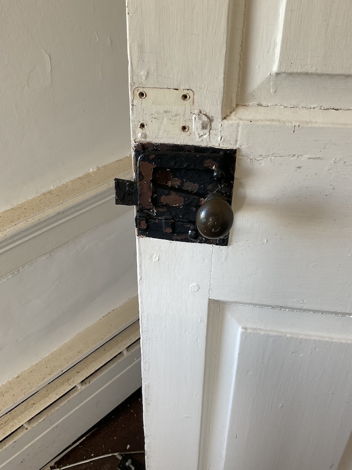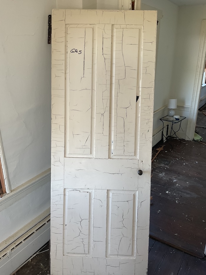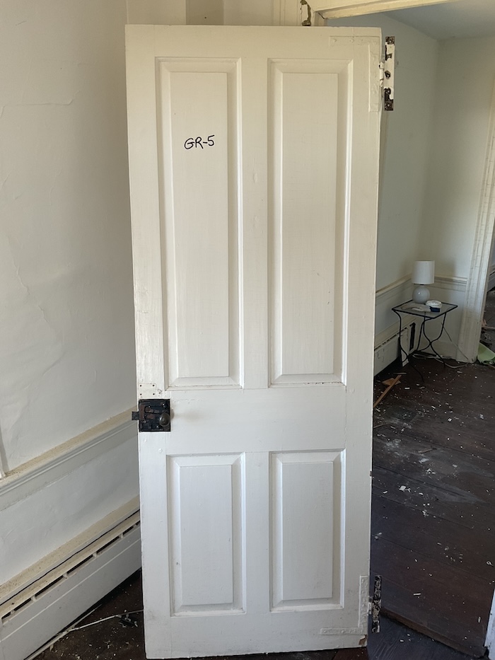 28-1/2” x 75-1/2” x 1” with hand forged 8” HL hinges and desirable Spring Latch with accompanying brass turn knob.