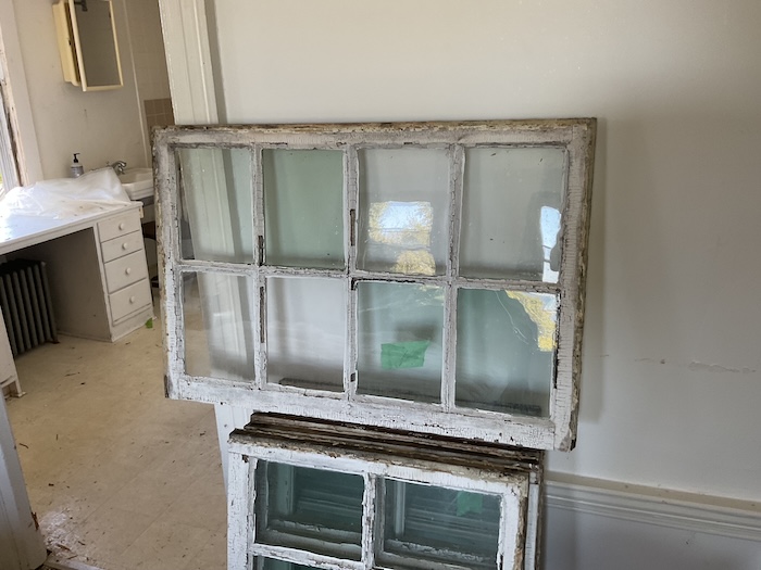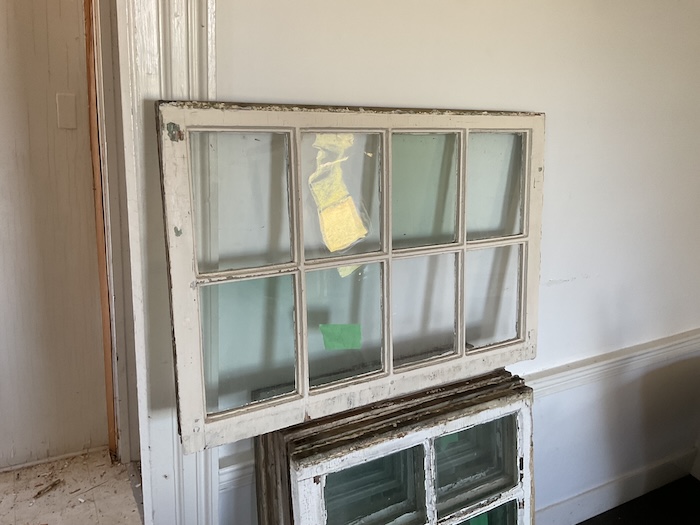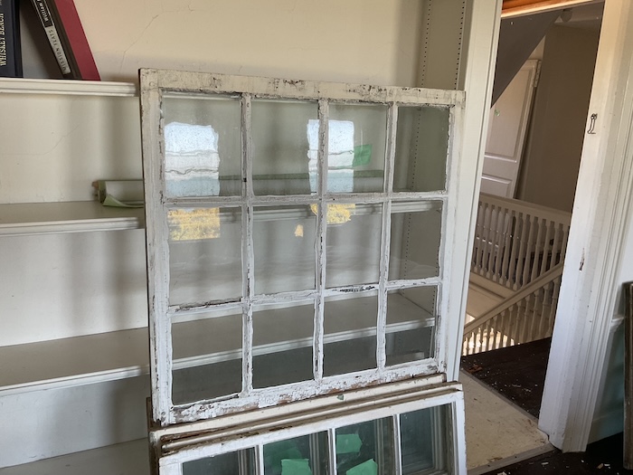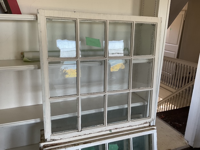 12 PAIR in very good condition. Swirly glass with bubbles and some are green tinted as is found in that vintage. The 12-lite sash measure 32-1/8”W x 30-3/4” and the 8-lite sash measure 32-1/8”W x 21-3/4”. Glass size is 7” x 9”. Most glass intact. One inch wide muntins. Sold as pair sets only.