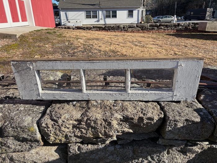 10” x 40-1/2” x 1-3/8”. Crusty, but will clean up nicely.