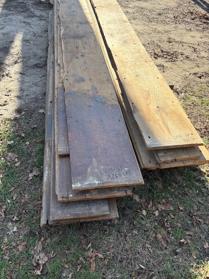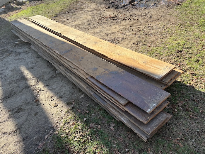Wonderful foot worn surface with some light paint. Widths 14”-18” x 15’ long average. Ship-Lapped. 260 square feet.