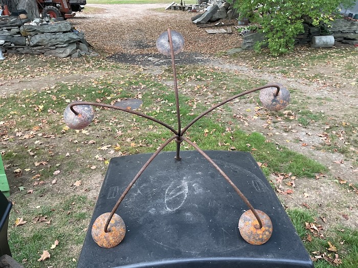 Five spiked candle cups are 3” diameter. Wonderful age/patina.