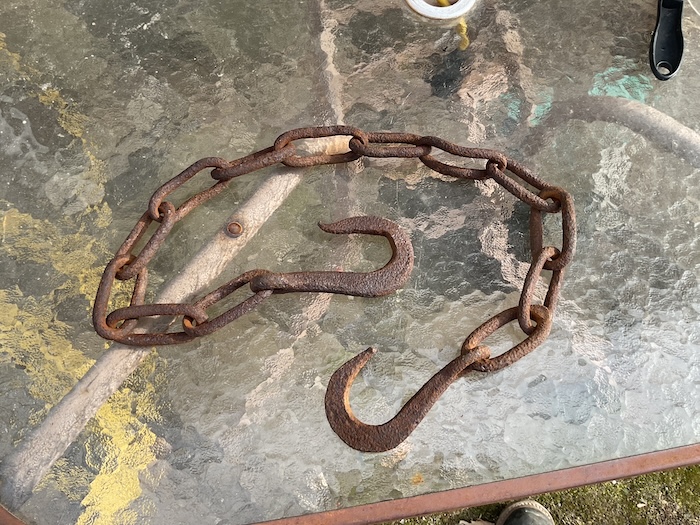 40” overall length. Hooks are 5”. Links are 2-1/2”