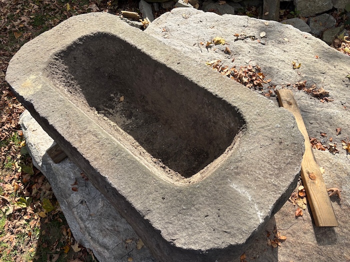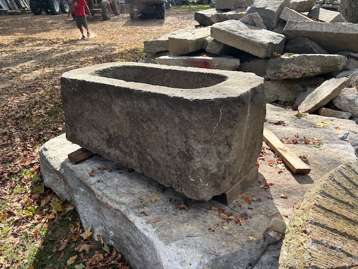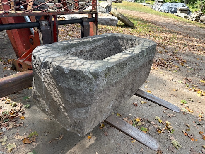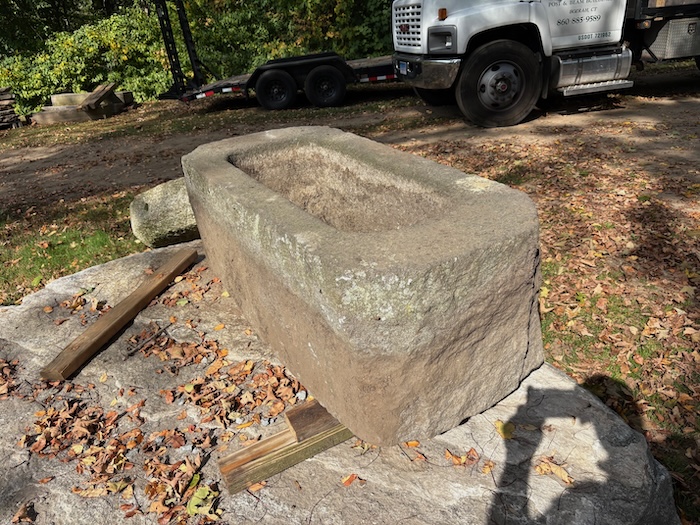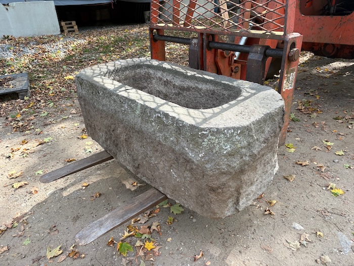 This was sunken so deep that it appeared to be a simple planter. Upon removal it was found to be 20”H x 24”W x 4’-3”L. Incredible condition with a wide rim. Increasingly harder and harder to source. Great medium grey color.
