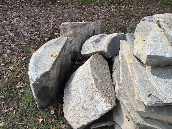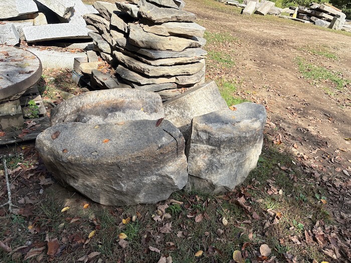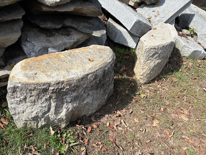 These are actually circa 1900 granite “bullnose” curbing. They generally measure 32”-36” long x 18”-20”H x 12”Wide