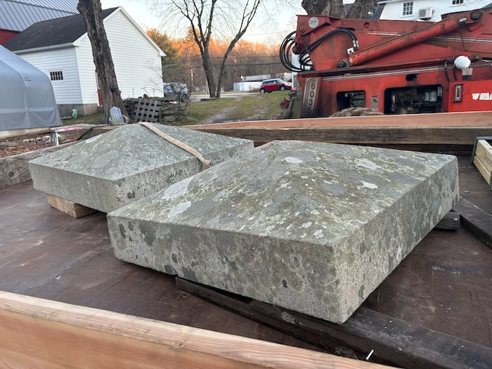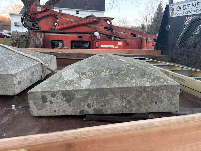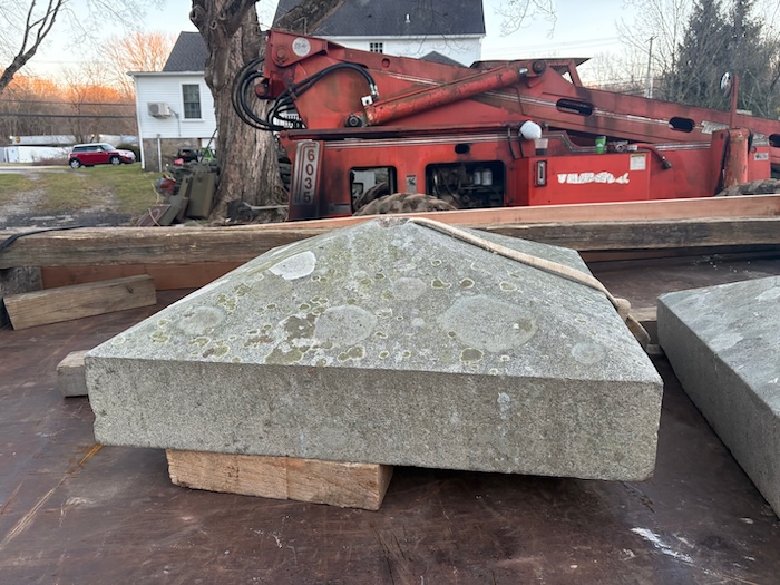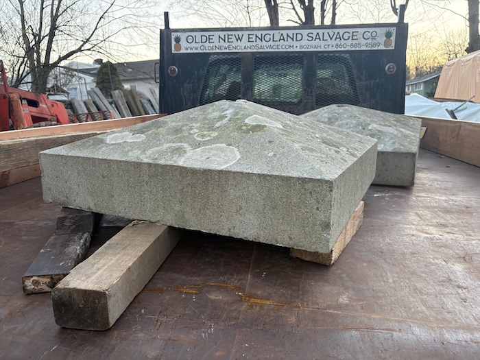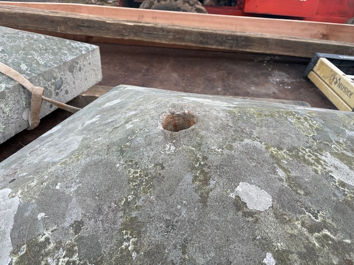 32-1/2” x 32-1/2” x 6” outer perimeter x 12” thick overall. 2-1/2” center hole for electrical if desired. One lower edge has 4” minor loss.