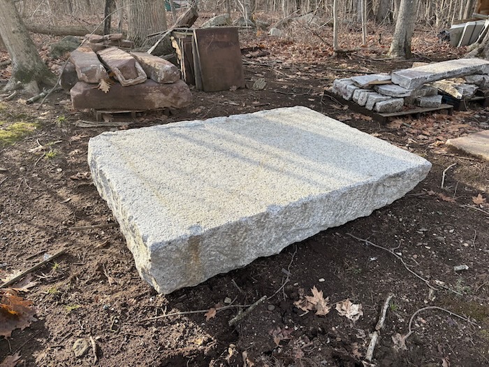 New Hampshire origin. Measures 4’-6” x 6’-6” x 12”. Foot worn surface. Mild salt and pepper graining.