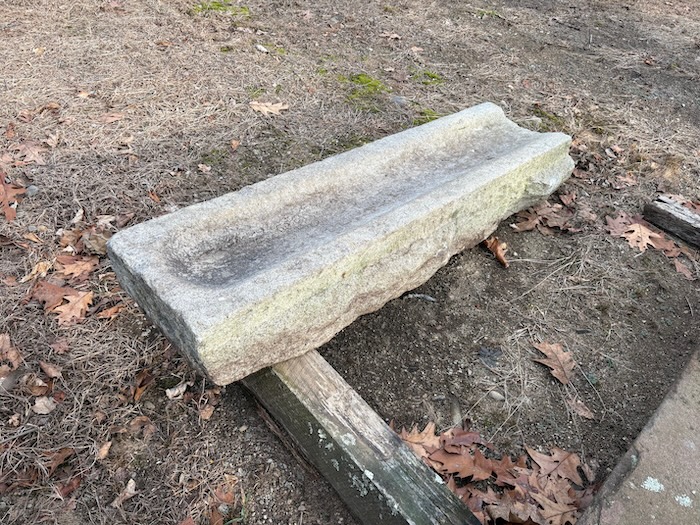 Uncommon offering in a nice worn surface. This channeled water from a building downspout, across a sidewalk, into the street gutter system. Measures 9”H x 12”W x 52”L
