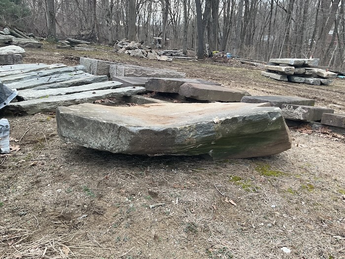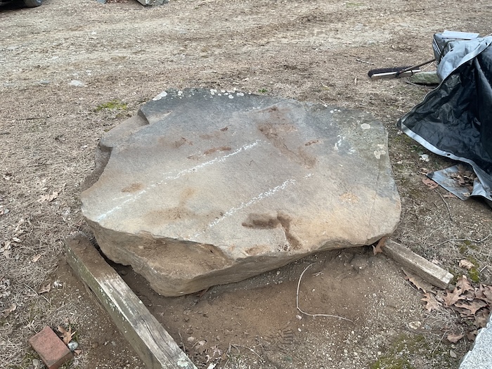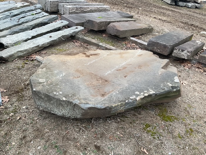 Pleasant sweep to the top surface of this 5’ x 6’ x 10” thick vintage step. Freshly extracted from an 18th century dwelling site.