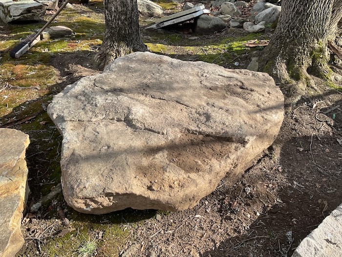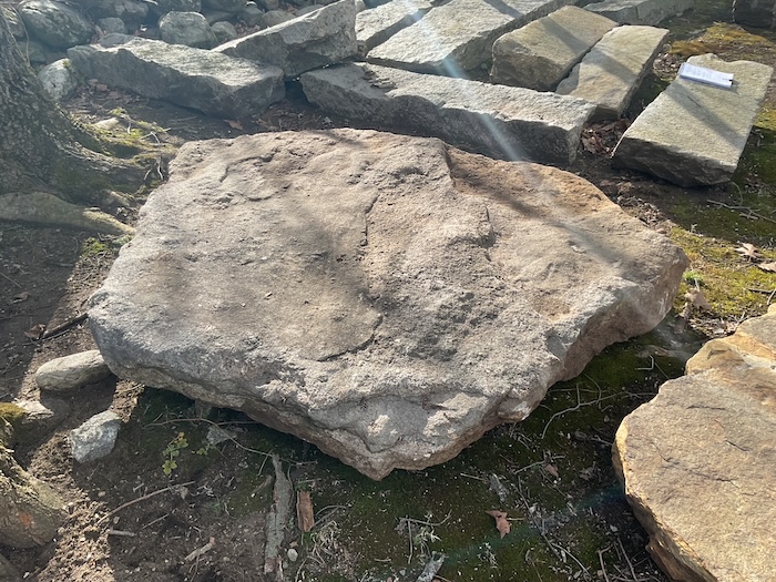 Freshly extracted from an 18th century dwelling site. Installed as a walking surface, inter-connected with other similar. Measures 6’ x 6’ x 8” thick. Top surface is rough as shown.
