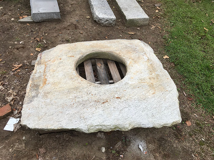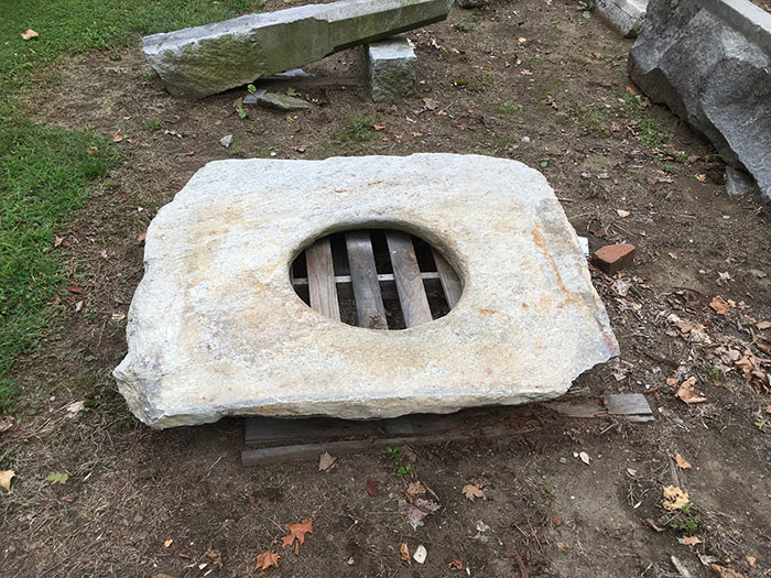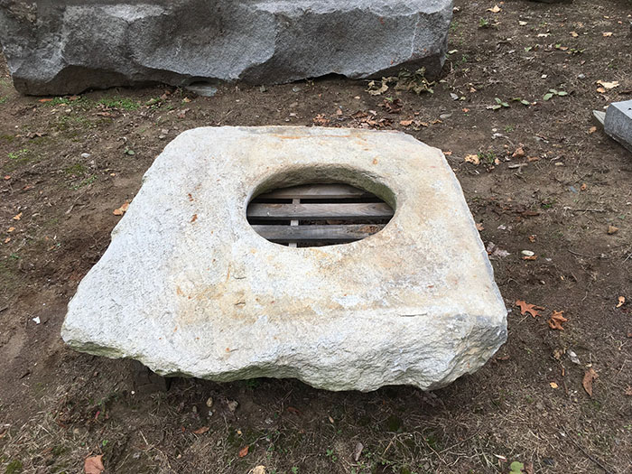 Rhode Island origin. Measures 48” x 60” overall x 8” at the thickest x 22” diameter hole. Desirable light tan coloration. No cracks. Pleasing scale.